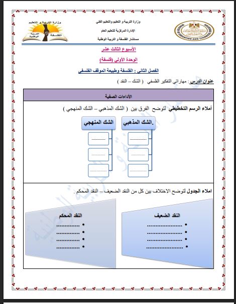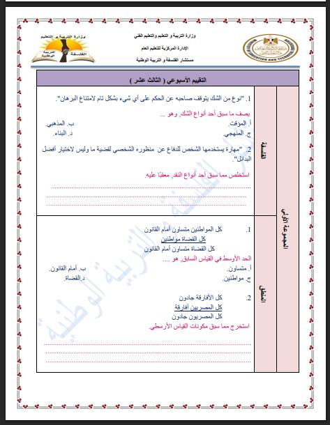 ويستعرض موقع السبورة من خلال مراجعات نهائية، نشر أسئلة تقييم الأسبوع الـ 13 الفلسفة والمنطق الصف الأول الثانوي، مش هتقدر تفوتها من خلال مراجعات نهائية، في موقع السبورة، وقسم درس خصوصي، الذي يضمن لك التفوق والتميز، بعد نشر مراجعات نهائية، وتحميل مذكرة ليلة الامتحان في مادة الفلسفة والمنطق لطلاب وطالبات الصف الأول الثانوي.