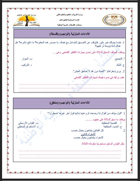 مراجعات نهائية في مقرر الفصل الدراسي الأول في الفلسفة والمنطق