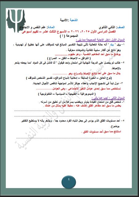 مراجعات نهائية.. أسئلة تقييم الأسبوع الـ 13 علم النفس والاجتماع الصف الثاني الثانوي، للعام الدراسي الجاري 2025-2026، في مراجعات نهائية وتحميل أسئلة تقييم الأسبوع الـ 13 علم النفس والاجتماع الصف الثاني الثانوي، حيث يواصل موقع السبورة نشر مراجعة ليلة الامتحان من خلال تحميل أقوى أسئلة تقييم الأسبوع الـ 13 علم النفس والاجتماع، لطلاب وطالبات الصف الثاني الثانوي، من خلال مراجعات نهائيه، واستعراض جميع نظام أسئلة امتحانات علم النفس والاجتماع، وشرح مبسط، واستعراض لجميع أسئلة مادة علم النفس والاجتماع، عن طريق نشر العديد من الامتحانات، لطلاب وطالبات الصف الثاني الثانوي، في مراجعات نهائية، لن يخرج عنها امتحان آخر العام، ومن خلال متابعة مراجعات نهائية أعدها خبراء المادة في وزارة التربية والتعليم.