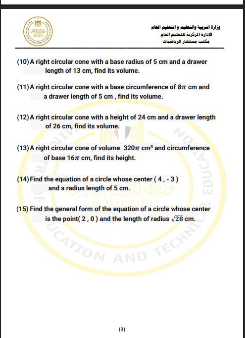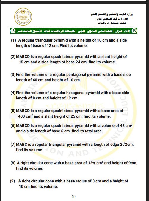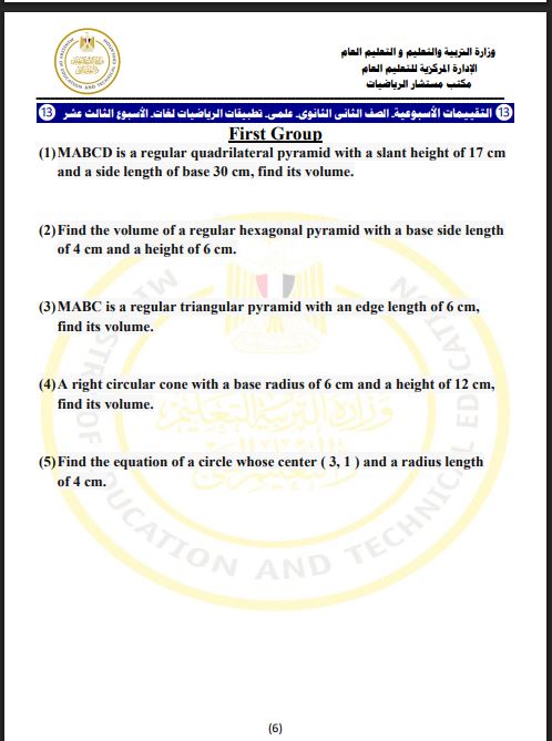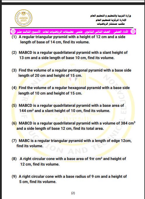 مراجعات نهائية.. أسئلة تقييم الأسبوع الـ 13 الرياضيات البحتة الصف الثاني الثانوي