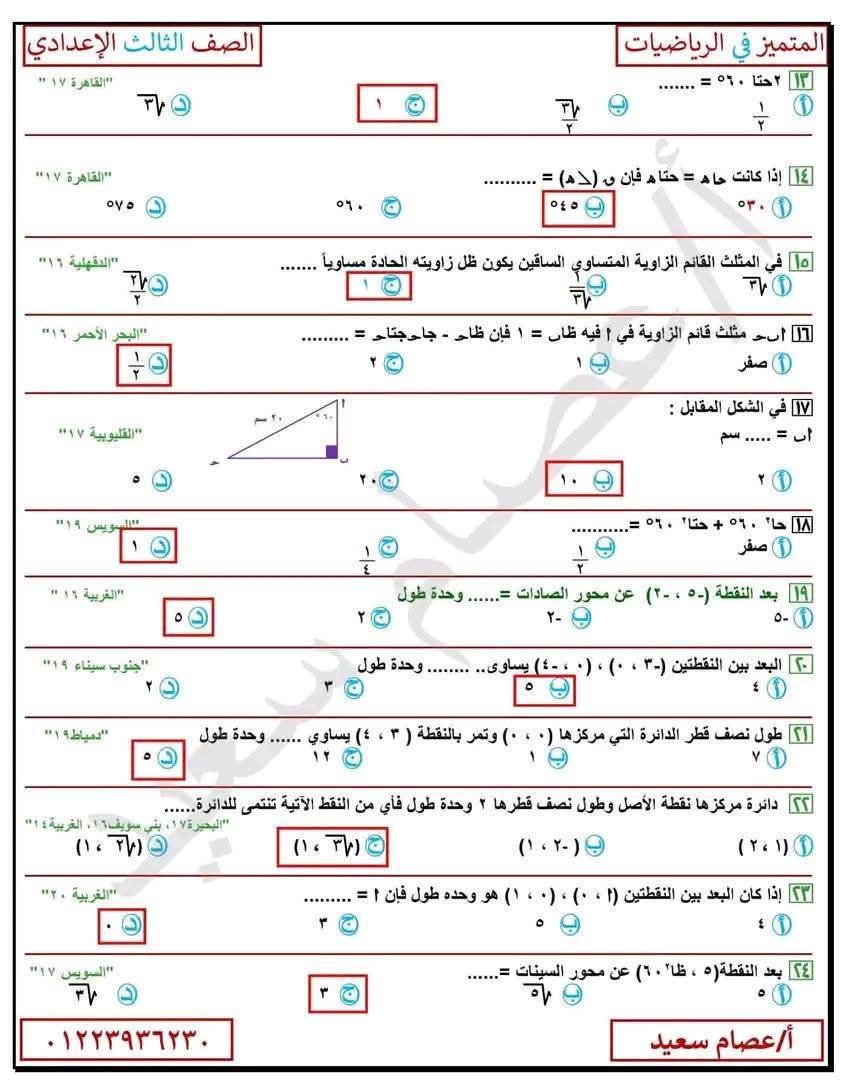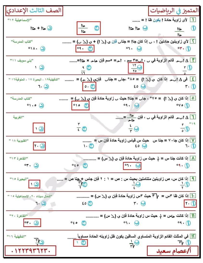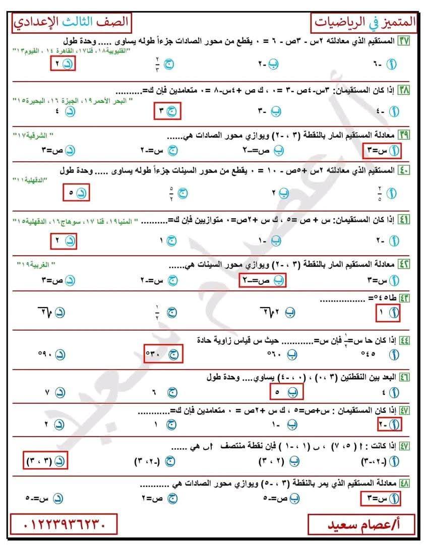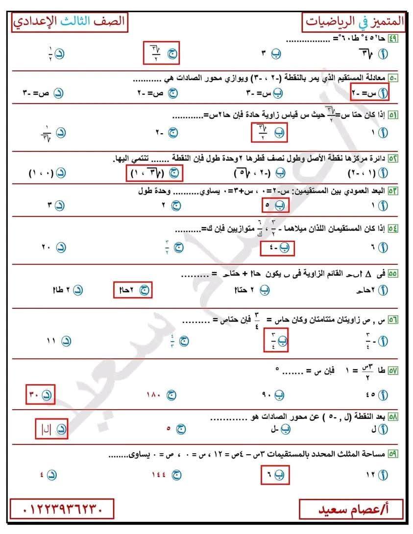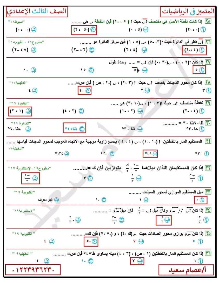 أقوى مراجعة في ليلة امتحان مادة الرياضيات