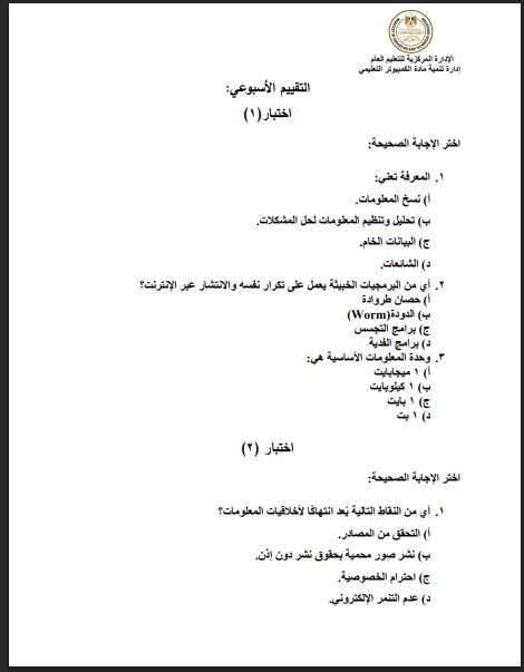 مراجعات نهائية.. أسئلة تقييم الأسبوع الـ 12 البرمجة والذكاء الاصطناعي لغات الصف الأول الثانوي