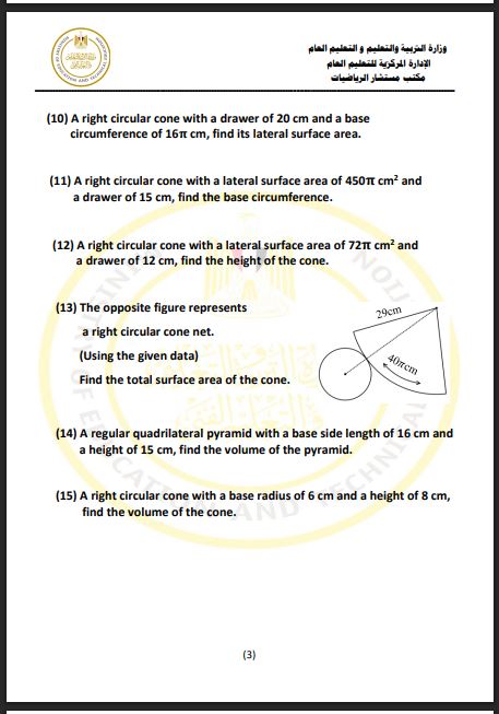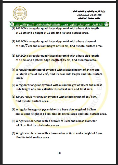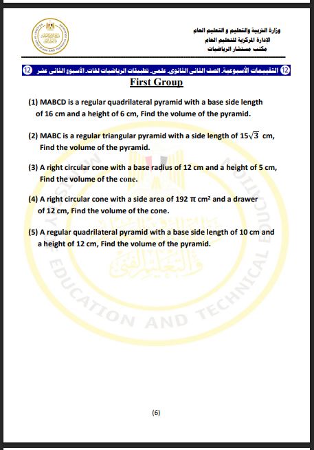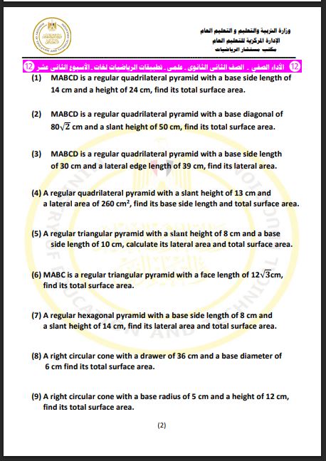 مراجعات نهائية.. أسئلة تقييم الأسبوع الـ 12 الرياضيات البحتة الصف الثاني الثانوي