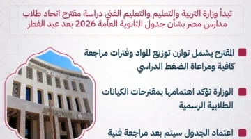 إجراء عاجل من وزارة التعليم حول جدول امتحانات الثانوية العامة 2026 مع توضيحات إنفوجراف
