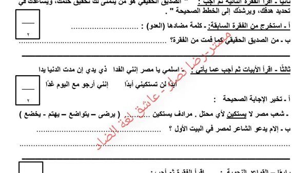 امتحان عربي وإجابته.. وتحميل أقوى مراجعة ليلة امتحان اللغة العربية، تضمن لك دخول الامتحان وهو في جيبك، لطلاب وطالبات الصف الرابع الابتدائي، من خلال امتحانات اللغة العربية، تضمن لك مراجعات نهائية في منهج الفصل الدراسي الأول، والتى تعد مرجعا أساسيا في مراجعات نهائيه، لمقرر المنهج الدراسي للعام الدراسي الجاري 2025-2026، أعدها خبراء المادة في وزارة التربية والتعليم، من أجل مراجعات نهائيه لطلاب الصف الرابع الابتدائي.