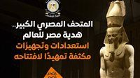 نشر المركز الإعلامي لمجلس الوزراء عددًا من الإنفوجرافات عبر منصاته على مواقع التواصل الاجتماعي، بعنوان "المتحف المصري الكبير.. هدية مصر للعالم.. استعدادات وتجهيزات مكثفة تمهيدًا لافتتاحه".