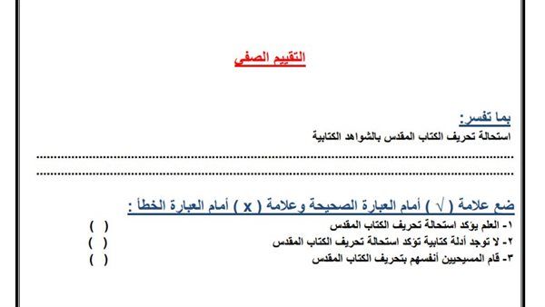 أسئلة تقييم الأسبوع الثالث التربية المسيحية ثانية ثانوي