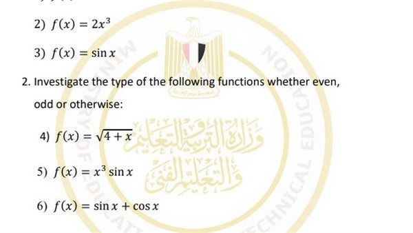 مراجعات نهائية.. أسئلة تقييم الأسبوع الثالث الرياضيات البحتة الصف الثاني الثانوي