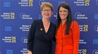 جاء ذلك خلال لقائها مع أوديل رينو باسو، رئيسة البنك الأوروبي لإعادة الإعمار والتنمية، على هامش مشاركتها في فعاليات منتدى البوابة العالمية بالعاصمة البلجيكية بروكسل.