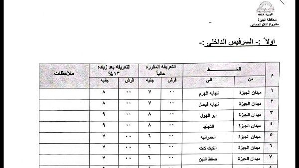 تعريفات السرفيس والنقل الجماعي للخطوط الداخلي