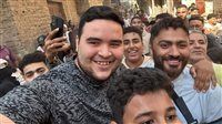 الأهالي يلتفون حول تامر حسني أثناء زيارته طفلة مصابة بالسرطان في شبين القناطر