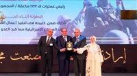 وقبيل بدء مراسم التكريم، ألقى الرئيس السيسي كلمة قال فيها:"نلتقي اليوم بأبطال أعادوا العزة والكرامة لمصر.. متشرفين بوجودكم، واسمحوا لي أحييكم تاني وتالت ورابع، ومش هفوت الفرصة أتصور معاكم، لأني ماكنتش موجود معاكم وقتها، بس النهاردة فخور إني واقف وسطيكم."