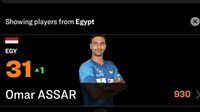 في منافسات الرجال، جاء عمر عصر في صدارة اللاعبين المصريين بعدما احتل المركز الحادي والثلاثين عالميًا برصيد 930 نقطة، ليواصل تأكيد مكانته بين نخبة لاعبي العالم.