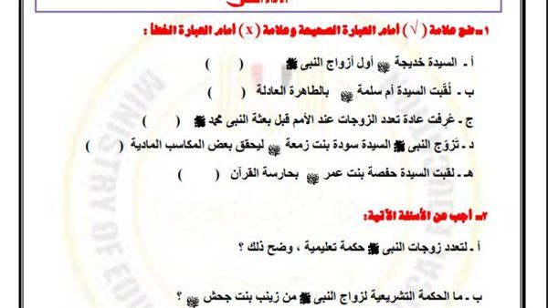 أسئلة تقييم الأسبوع الثالث التربية الاسلامية أولى ثانوي