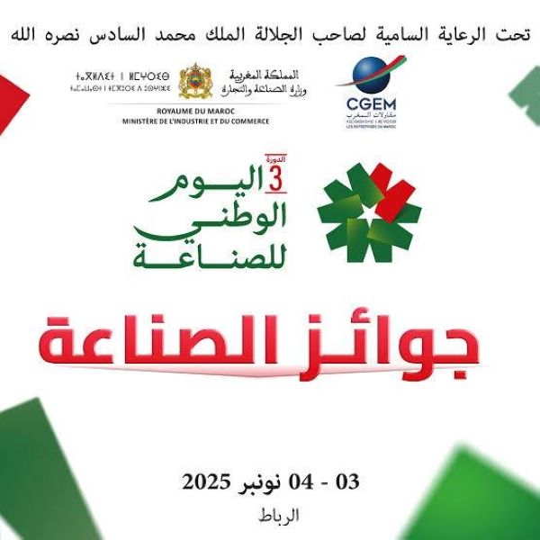 تنظم وزارة الصناعة والتجارة والاتحاد العام لمقاولات المغرب الدورة الثالثة "لليوم الوطني للصناعة"، وذلك يومي 3 و4 نونبر 2025 بمدينة الرباط، تحت شعار: "علامة صُنع في المغرب: ضمانة الجودة، والقدرة التنافسية، وآلية للتنمية المجالية المندمجة."