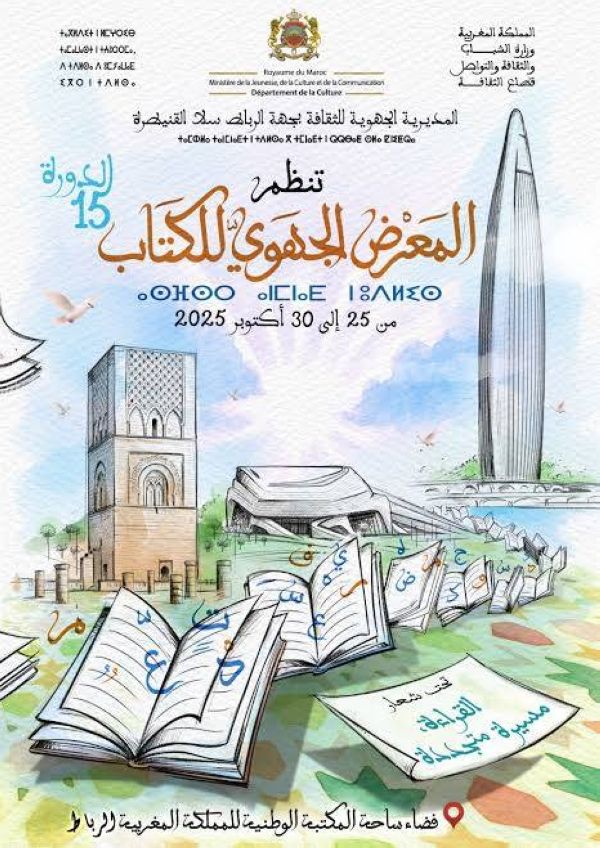 في سياق دينامية ثقافية متواصلة، وحرصاً منها على تثمين الكتاب والقراءة العمومية، تنظم المديرية الجهوية لقطاع الثقافة بجهة الرباط – سلا - القنيطرة، بدعم من مديرية الكتاب والخزانات والمحفوظات وبتعاون مع المكتبة الوطنية للمملكة المغربية وشركائها المؤسساتيين، الدورة الخامسة عشرة للمعرض الجهوي للكتاب، تحت شعار "القراءة، مسيرة متجددة" وذلك خلال الفترة ما بين 25 و30 أكتوبر 2025 بـفضاء ساحة المكتبة الوطنية للمملكة المغربية – الرباط، في إطار البرنامج السنوي للمعارض الجهوية للكتاب الذي تشرف عليه وزارة الشباب والثقافة والتواصل – قطاع الثقافة.