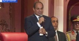 قال السيد الرئيس عبد الفتاح السيسى خلال كلمته باحتفالية وطن السلام: خلوني أبدأ كلامي بالحمد، الحمد لله، عاوز أوضح لكم نقطة مهمة، خليني أرحب بكم كلكم، أهلا وسهلا، أهلا بكم.