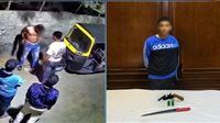 أمكن ضبط الأخير (عاطل "له معلومات جنائية" – مقيم بالجيزة) وبحوزته (فرد خرطوش - سلاح أبيض) وبمواجهته اعترف بارتكاب الواقعة على النحو المشار إليه.