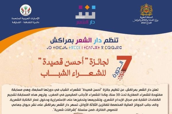 وأبرز المصدر ذاته، أن مهرجان الشعر المغربي يعد موعدا سنويا لتقليد ثقافي وشعري، يحتفي بأجيال وتجارب وحساسيات الشعر المغربي، ولحظة معرفية وثقافية سنوية، تفتتح موسما ثقافيا جديدا تاسعا لدار الشعر بمراكش، في سعي حثيث لمواصلة سلسلة من المبادرات والبرامج احتفاء بالتعدد اللساني والتنوع الثقافي المغربي وبشجرة الشعر المغربي الوارفة بمزيد من الانفتاح على حساسيات وتجارب القصيدة المغربية الحديثة.