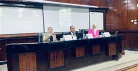 وألقى الدكتور "إسلام عزام" رئيس البورصة المصرية محاضرة استعرض فيها آليات عمل سوق الأوراق المالية، وأهمية الاستثمار طويل الأجل، والأدوات والآليات المتاحة حاليا في سوق الأوراق المالية وأيضا تلك المخطط إطلاقها في الفترة القادمة، وأوضح "عزام" دور البورصة في تعزيز الشمول المالي وتشجيع الادخار عبر أدوات سوق رأس المال، وأكد أن البورصة تولي اهتماما خاصا ببرامج التثقيف والتدريب العملي لطلاب الجامعات، انطلاقا من إيمانها بأهمية بناء جيل جديد واعى بثقافة الاستثمار المسؤول.