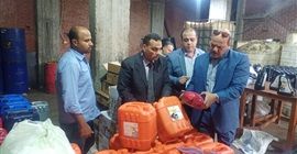 وقد اسفرت الحملة عن ضبط مخزن بدون ترخيص يقوم بإعادة تعبئة وتدوير زيوت السيارات داخل جراكن تحمل علامات تجارية مقلدة.