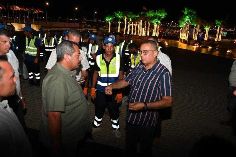 وخلال متابعته الميدانية، تفقد المحافظ أعمال التجميل ورفع الكفاءة بطريق السلام والميادين الرئيسية، موجهاً بسرعة الانتهاء من أعمال الرصف والتشجير والإنارة الحديثة لتظهر المدينة في أبهى صورها أمام ضيوف القمة. كما تابع المحافظ مواقع العمل بمحيط قاعة المؤتمرات والمناطق والطرق المحيطة بها.