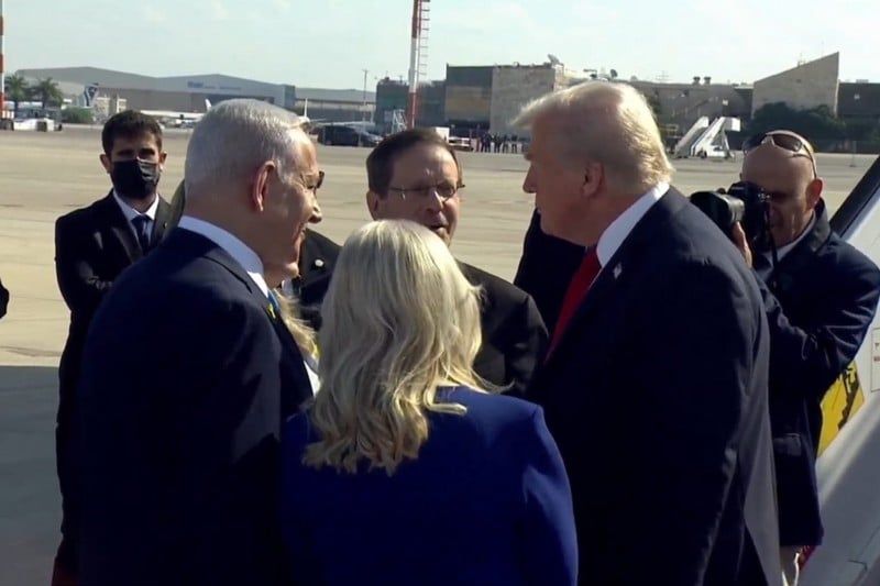 وكان في استقبال ترامب في مطار بن غوريون رئيس الوزراء الإسرائيلي بنيامين نتانياهو والرئيس الإسرائيلي اسحق هرتسوغ.