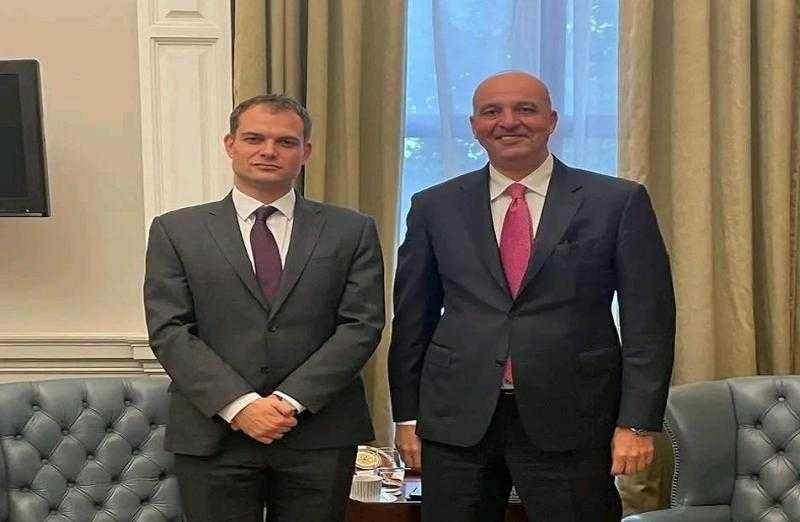 التقى السفير أشرف سويلم، سفير جمهورية مصر العربية لدى المملكة المتحدة، اليوم الثلاثاء، مع هايمش فالكونر وزير الدولة البريطانى للشرق الأوسط وشمال أفريقيا، حيثُ أكد الجانبان أهمية العلاقات بين مصر والمملكة المتحدة، وحرصهما المشترك على الارتقاء بها إلى مستوى شراكة استراتيجية متكاملة بما يُحقق مصالح البلدين وأولوياتهما ويسهم أيضاً فى دعم الاستقرار والتنمية بالمنطقة.
