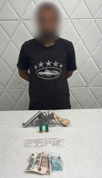 عقب تقنين الإجراءات، تمكنت الأجهزة الأمنية من تحديد وضبط مرتكب الواقعة، وتبين أنه له معلومات جنائية، وعُثر بحوزته على فرد خرطوش وكمية من مخدر الآيس.