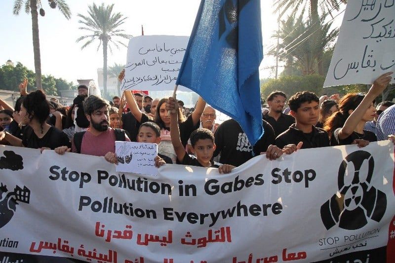 ونظّم سكان مدينة قابس عدة تظاهرات للمطالبة بإغلاق المجمع الذي يعالج الفوسفات لإنتاج الأسمدة.