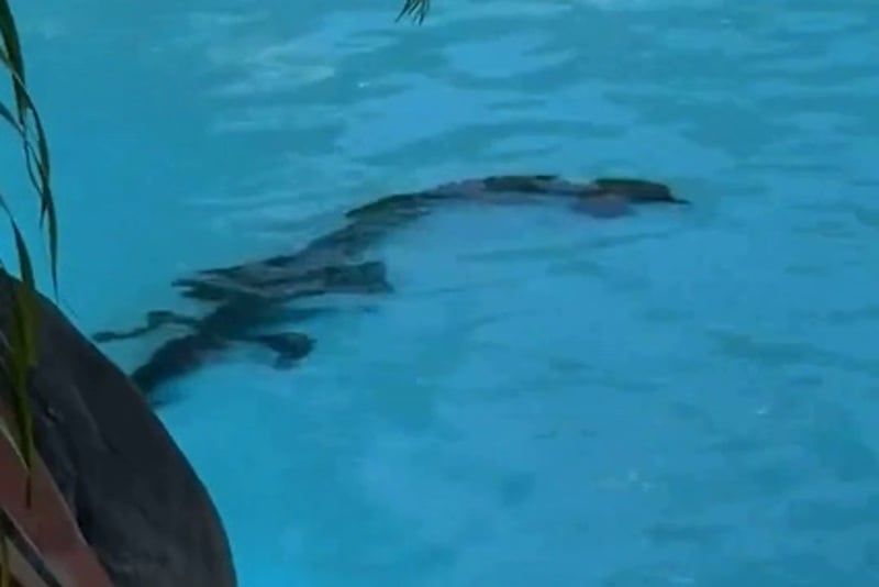 أظهرت صورٌ نُشرت على الإنترنيت، في الساعات الأخيرة، تمساحا في مسبح فندق فاخر في شمال شرق أستراليا؛ فيما كان النزلاء مسترخين تحت أشعة الشمس على بُعد أمتار قليلة.