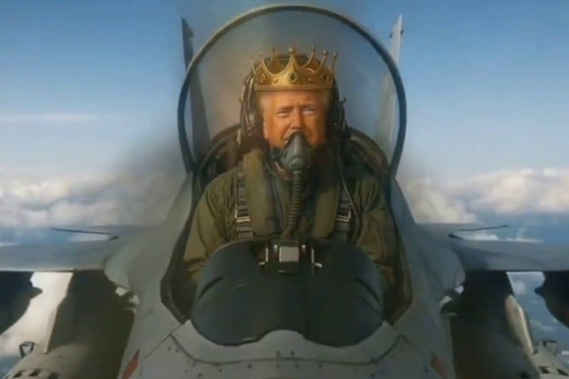 ويظهر أحد مقاطع الفيديو ترامب، والذي نشره على منصته للتواصل الاجتماعي “تروث سوشال”، قائدا لطائرة حربية تحمل عبارة “الملك ترامب”. وفي المقطع، تلقي الطائرة شيئا بنيا يشبه البراز، على المتظاهرين المحتشدين في مدينة تبدو وكأنها نيويورك.