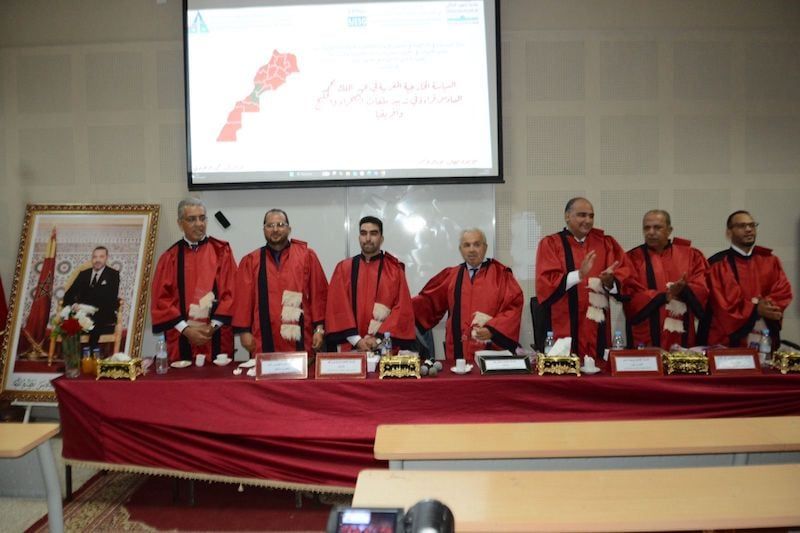 تألفت اللجنة العلمية المشرفة على المناقشة من الأساتذة الجامعيين: الدكتور محمد الغالي، عميد كلية العلوم القانونية والاقتصادية والاجتماعية – القاضي عياض بقلعة السراغنة، رئيسا، والدكتور أحمد بوجداد مقررا وعضوا، والدكتور عادل فراج مقررا وعضوا، والدكتور عبد الفتاح البلعمشي مقررا وعضوا، والدكتور كمال الهشومي عضوا، والدكتور عبد الغني عماري عضوا.