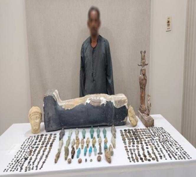 وعقب تقنين الإجراءات تم استهداف المتهم وضبطه، وعُثر بحوزته على 533 قطعة أثرية متنوعة تشمل تماثيل وتمائم وعملات معدنية. وبمواجهته أقر بحيازته للمضبوطات بقصد الاتجار، مشيرًا إلى أنه تحصل عليها من أعمال حفر وتنقيب غير مشروع بإحدى المناطق الأثرية ببني سويف.