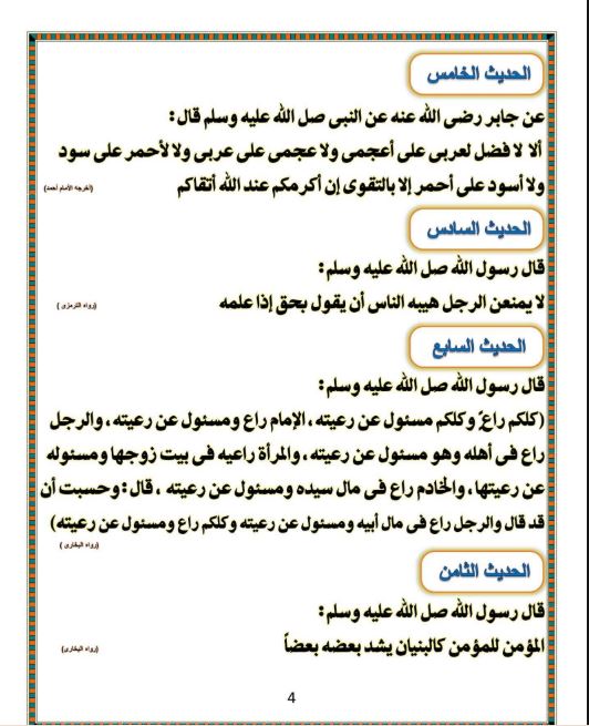 مراجعات نهائية في مقرر الفصل الدراسي الأول التربية الدينية الاسلامية الشهادة الاعدادية