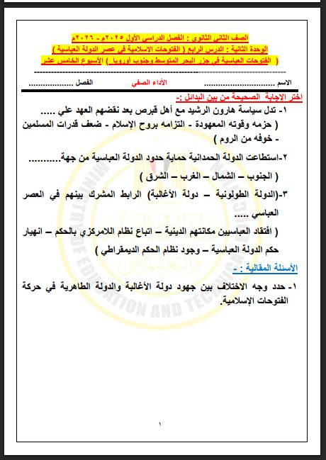 أسئلة تقييمات الأسبوع الـ 15.. أسئلة تقييم الأسبوع الـ 15 التاريخ الصف الثاني الثانوي، للعام الدراسي الجاري 2025-2026، في مراجعات نهائية وتحميل أسئلة تقييم الأسبوع الـ 15 التاريخ الصف الثاني الثانوي، حيث يواصل موقع السبورة نشر مراجعة ليلة الامتحان من خلال تحميل أقوى أسئلة تقييم الأسبوع الـ 15 التاريخ، لطلاب وطالبات الصف الثاني الثانوي، من خلال مراجعات نهائيه، واستعراض جميع نظام أسئلة امتحانات التاريخ، وشرح مبسط، واستعراض لجميع أسئلة مادة التاريخ، عن طريق نشر العديد من الامتحانات، لطلاب وطالبات الصف الثاني الثانوي، في مراجعات نهائية، لن يخرج عنها امتحان آخر العام، ومن خلال متابعة مراجعات نهائية أعدها خبراء المادة في وزارة التربية والتعليم، وللدخول على تقييم الأسبوع العاشر من خلال هذا الرابط.. اضغط هناااااااااااا