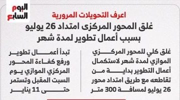 انفوجراف.. اعرف تفاصيل غلق المحور المركزى بسبب أعمال تطوير لمدة شهر