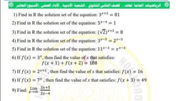 تقييمات الاسبوع العاشر ثانية ثانوي